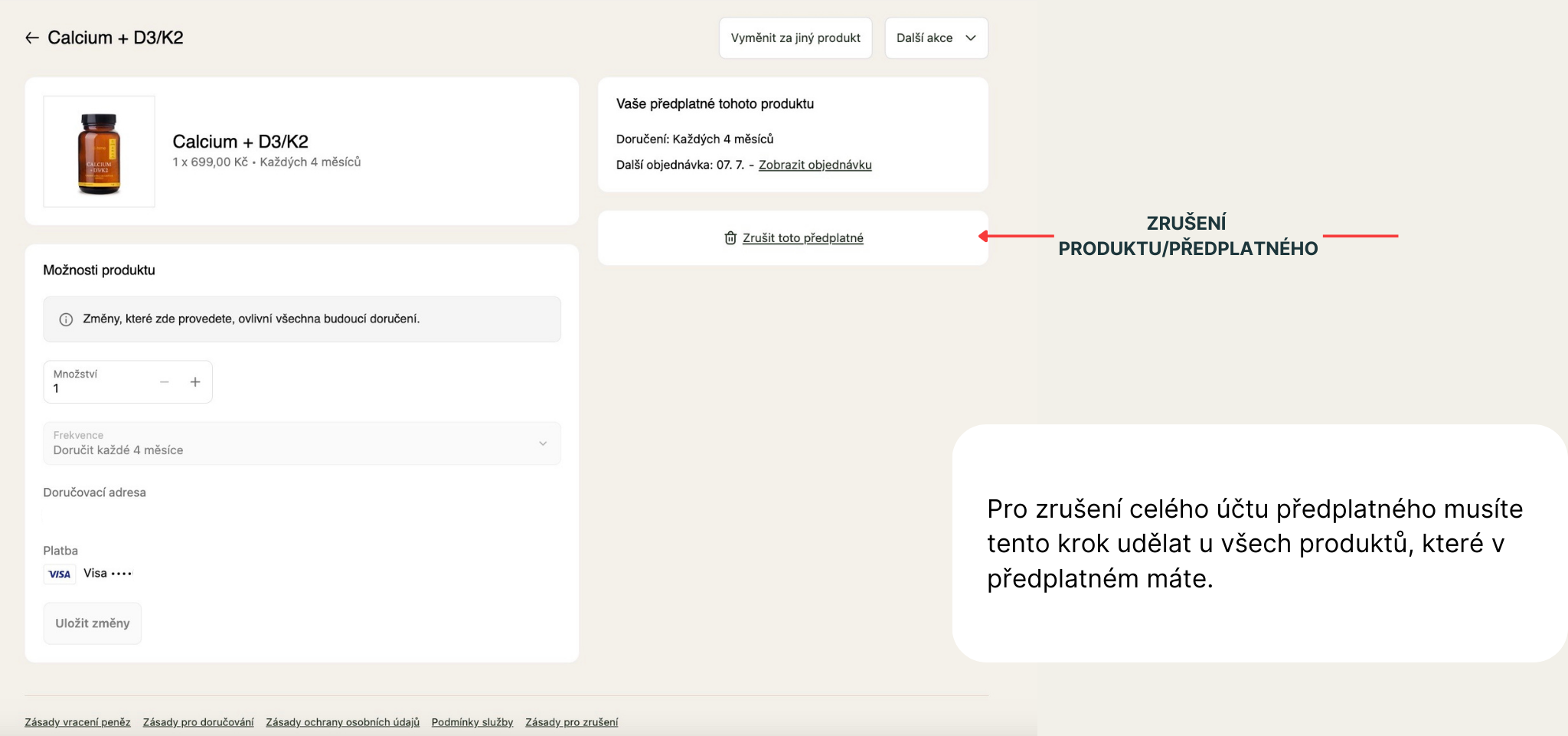 4. Predplatné je potrebné zrušiť pri každom produkte zvlášť: